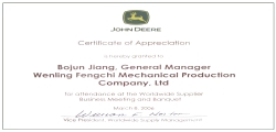 Became the annual world's top supplier of John Deere Company