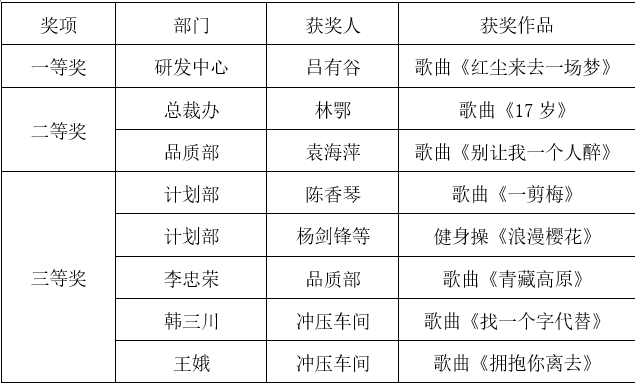 此次才藝競(jìng)賽活動(dòng),大家都充滿熱情的參與,各自展現(xiàn)拿手才藝,再次看到了充滿激情,熱血和凝聚力的風(fēng)馳人,活動(dòng)雖已圓滿結(jié)束,但是大家的這份價(jià)值觀精神將會(huì)在工作中繼續(xù)延續(xù)。相信有著這么一群具有創(chuàng)新、敢于表現(xiàn)的風(fēng)馳人,定能實(shí)現(xiàn)公司的使命“引領(lǐng)低速車輪發(fā)展,為中國制造正名”!