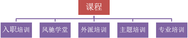 主題培訓:課程有人力部統一組織,包括案例研討、專題研修、網絡課程、項目改善、標桿學習、戶外拓展、集體外訓等。